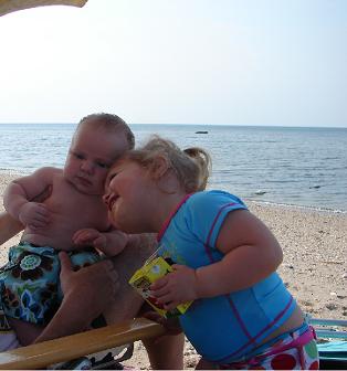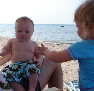 I don't post as often as I used to but I wanted to share some pictures from our trip to the beach yesterday. DS is just about 12 weeks old and over 16lbs! He's really become such a good, sweet little guy. DD is in love with him and a great big sister! Image Attachment(s):
