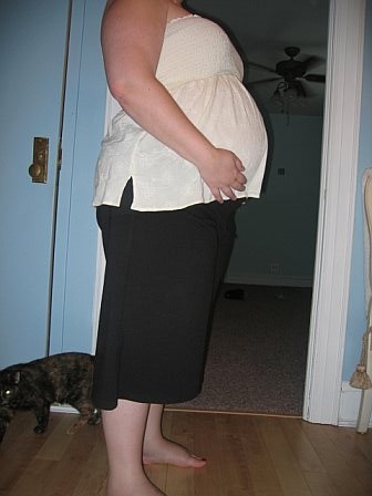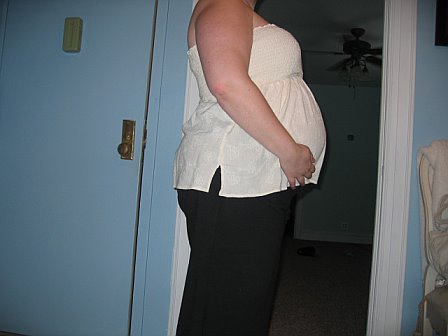 Well, I asked DH to take a pic of me, and NOW I believe them I can't believe how big I am. I swear it's just the shirt, but DH says NO. Oh, and notice my lovely tree trunks that I once called legs Image Attachment(s):