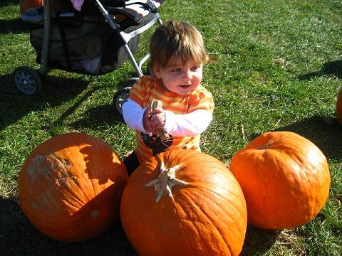 Kadyn EXTREMELY interested in the pumpkin stand.... Watch out Mr. Jack O'Lantern!