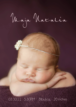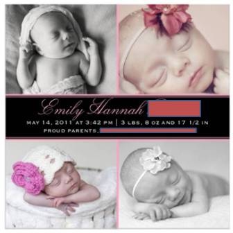 I love all of the them, but the picture of her in the white basket is perfect I think for this type of announcement. You could still do a square and then on the back you could use one of the ones you posted. I ended up using the vertical one.