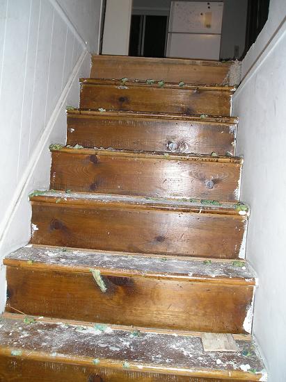 The old stairs, after carpet was ripped up, and the new stairs, before the railing was put on... Image Attachment(s):