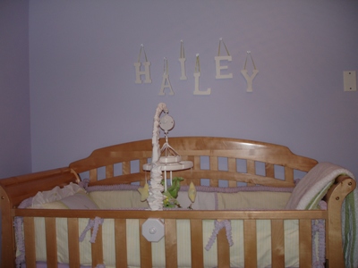 I like that set, I almost chose it . We spell my daughter's name Hayley.....and her room is that lavender color too....