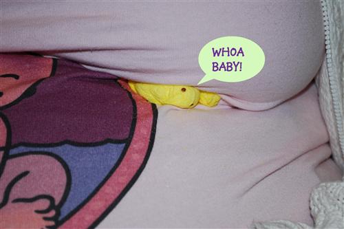 I definitely can't compete in humor with the previous one. But here is my DD enjoying her 1st peep! I can't get her to eat her veggies, but she bit the head right off the peep!