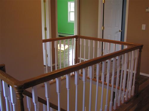 Many of the estimates we received did not cover finishing the wood (oak). The posts are poplar. An all oak banister will run you more due to the cost of the wood. Image Attachment(s):