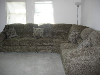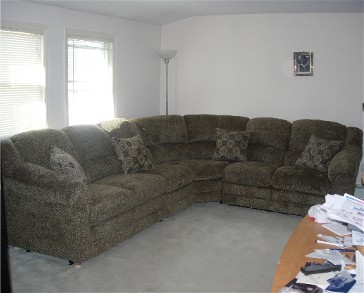 COUCH IS HERE! It took the delivery guys about 15 minutes to bring it up the stairs. It came with 4 pillows that we didnt know about so we are psyched(Don't mind the mess on my computer table):
