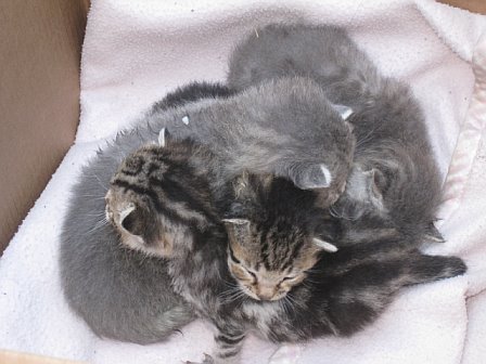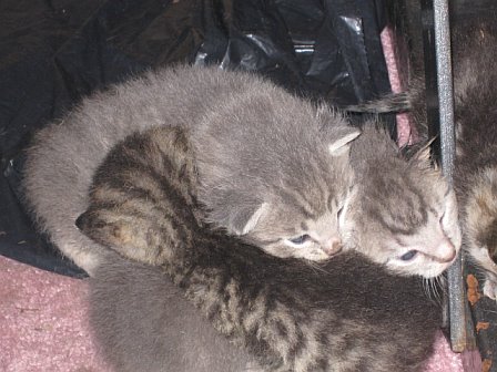 We found baby kittens in my MIL garage yesterday. We tried to feed them some milk but they wouldnt take it. The mother wasnt there for 2 days but today she came back to nurse themChat Icon We are hoping they will be okay. Here are some pics...