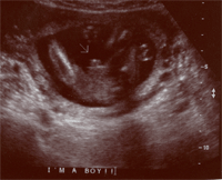 Boy!! I couldn't believe it. I'm so happy, but I was shocked -- I was so sure it was a girl. It was so funny during the scan the tech scanned past the genitals to the feet and I thought I saw something and I thought, "hey what's that doing there?" Then she came back to the genitals and I said, "Do I see what I think I see?" She smiled and said, "yes." Poor DH, I had him so convinced it was a girl, so he said, "It's a girl?" and I said, "No, it's a boy." and the tech said, "That's right, you're having a baby boy." The picture was so clear but I asked the doctor to confirm anyway. It was so exciting!!
