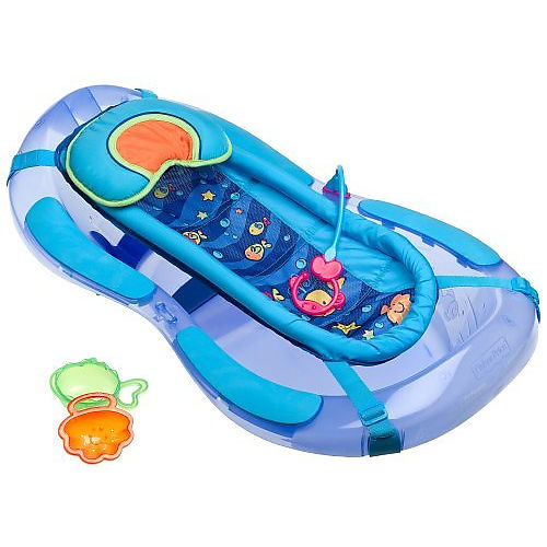I have been using this since birth - just stopped last week & DD is 21 months & about 28 lbs. It fits in the sink great & is easier for us since we have a deep jacuzzi tub that I wanted to wait as long as I could before I had to bathe her in it. Image Attachment(s):