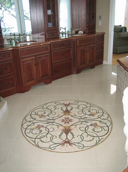 Thanks ladies. The tiles are tumbled marble...the seat is polished marble, and the listello borders are marble mosiacs made with tumbled marble and polished marble..I had them made by artsaics: http://www.artsaics.com/home.html Nelson, the owner, was a pleasure to work with, He also made the large medallion in our floor.