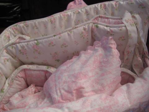 I bought this set when I first found out I was having DD, I ended up buying a different set before she was born. I saved it for #2, but then twins happened. DH is clearing house, so if anyone is interested let me know. Its a really cute set, dust ruffle, duvet comforter, bumper and a crib sheet. I think i spent $125, I'll take $75 or best offer.