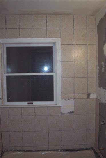 hall bath before-we bought it with no sheetrock or insulation-that is the kitchen you see through the wall IMAGE During-that's my DH IMAGE After IMAGE IMAGE
