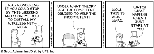 I hope you can read this Dilbert; it's along the same lines. I loved it so much, I printed it out and posted it in our work kitchen! Image Attachment(s):