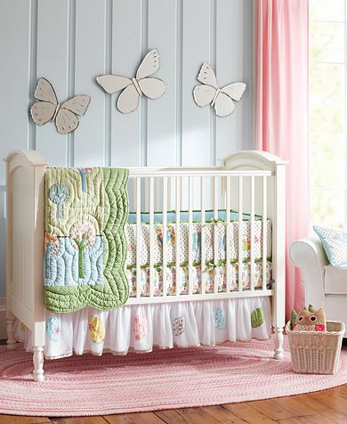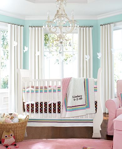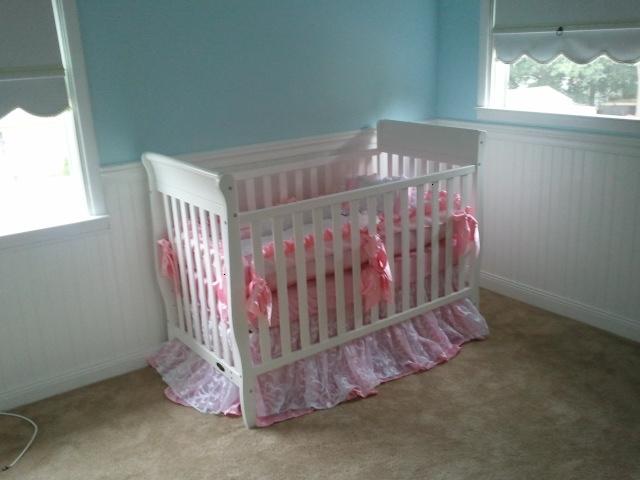 I'm doing a light blue room with white wainscoting for my baby girl. As far as bedding I had someone on etsy make it and it's all pink and white. I plan on doing all the wall decorations, etc. in pink.