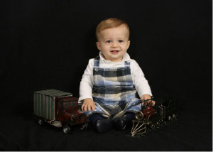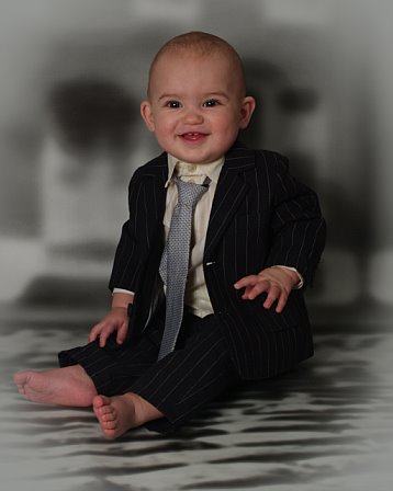 We took suit pics & more casual ones. He wore the suit at his party. The casual pics we put on the stamp for his thank yous