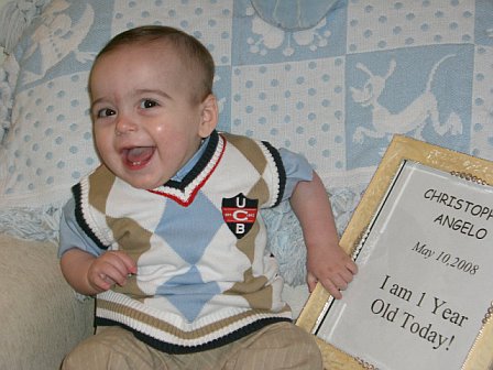 The second and third and my new favorite outfit and I think it would be great for a first birthday. My mom got it at Janie and Jack maybe a month or so ago - not sure if it's still available. You can't see in the pics but he wore it with dark jeans! Image Attachment(s):