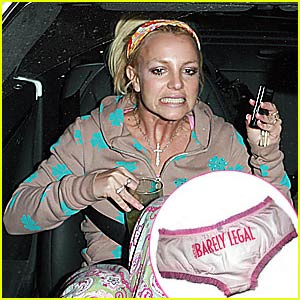 Brit proceeded to take off her own underwear before trying on a pair of boyshorts in the middle of the store while 15 other customers looked on. FIFTEEN!!!!! (See inset with “Barely Legal’ stitched across the rear end.)