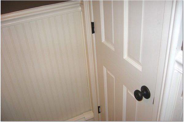 I have a small 1/2 bath downstairs that is stark white right now (new construction), and I've been thinking of putting up white wainscoting and painting the wall some dark color. I love the way yours came out!