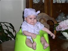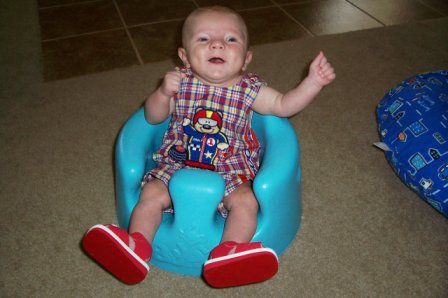 Here is Kevin at 5 months...with his chubby legs that get stuck in his Bumbo. he has been trying to push out of it for the last 2 months so I hardly use mine.