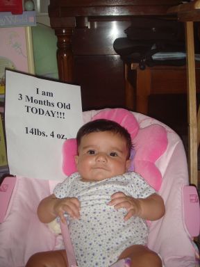 So she weighs 14lbs 4 oz and is 25 1/4 inches. The doctor wants me to start using 1 tablespoon of cereal rice each day. My girl is getting big!!! Image Attachment(s):