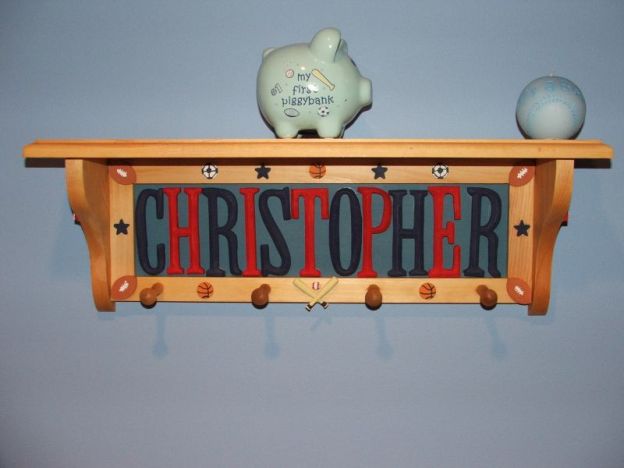 I bought the shelf, letters, and sports balls from AC Moore and painted everything. Again, I bought the letters and ribbon from AC Moore. I don't like the way I hung them and want to redo it. I've done a lot of other things, but don't have pictures. I'm in the process now of building them a sandbox. Image Attachment(s):
