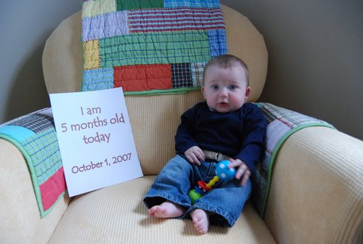 The chair got smaller to once you got down to 6 months--lol He's adorable!!