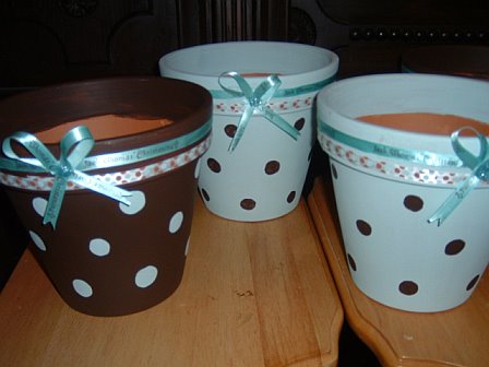 Here are the pots that Val painted for me for Jack's Christening. I have to admit that I am a complete copycat and copied Kara's centerpieces.