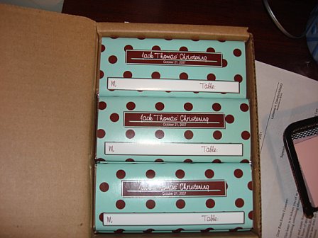 And here is a pic of the place seating card (a Hershey Bar) -- idea from Tanaholic.