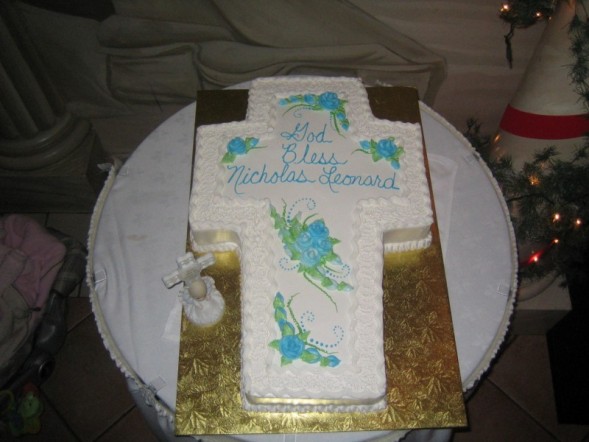 I got a large cake for 50 (but probably could have fed 100 with it!) with canoli filling from Benkerts for $75. I gave them a pic of DSs Christening outfit and they made it look just like it.