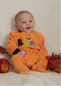 I like the pumpkin outfit! Adorable! Oh and Christopher...he's even more adorable. Can't forget him