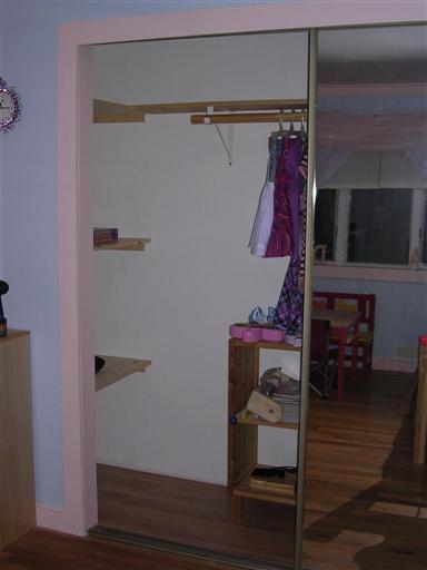 i'll try to post pics but my husband just put up wood shelves and then we made a shelf/rod in the center of the closet. its simple enough for the kids but very functional. Image Attachment(s):