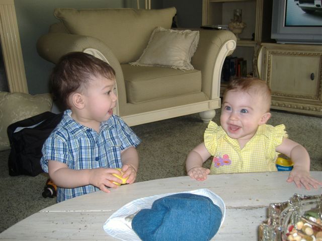 My DD & nephew are 12 weeks apart. They are so cute together, and are in the stage where they love playing together. Thought I'd share some pics. Enjoy!