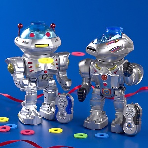 Product Description Your child can battle invading aliens, their sibling or their best friend with this future-cool 2-pack of Infrared Remote Control Robots from Odyssey. Whether you duel for dancing supremacy with the two dance movements, team up with a friend to defend against intergalactic baddies, or battle each other with flying disks, these IR robots are fun for everyone.