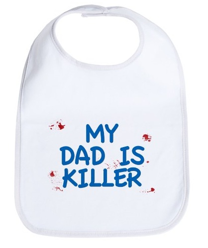 AND I bought him the "My Dad is Killer" bib since we're both Dexter fans. (see pic below)