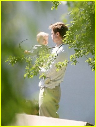 Papa Pitt spends some time with his mini-me, one year old daughter Shiloh.
