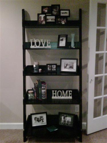 We have 3 frames above our couch with all b/w pics. Then we have 5 smaller frames across the top of our entertainment center with wedding pics with the family, our dog, and our bridal party.