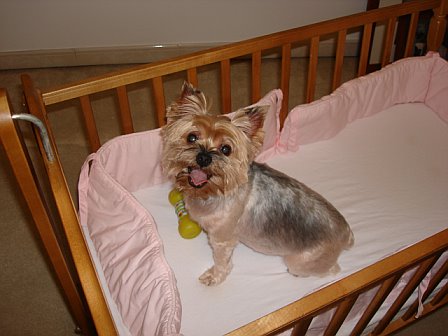 You know..I never thought of this!!! Yes..she follows me everywhere, and wants to be held by me etc. If I don't greet her when I come in... fugghedaboutit!!! I'm hoping that she will adjust well to the baby..since 1. it's a girl 2) she's always been the "princess". Here she is in the cradle we decided not to use.... Image Attachment(s):