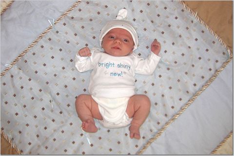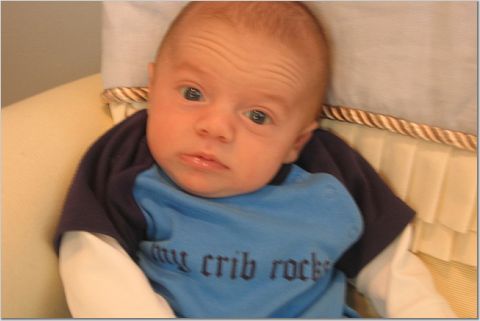 AWWWWWW he is so adorable!!!! Can you believe its been a month already??? I love his onesie "My crib rocks" so cute!