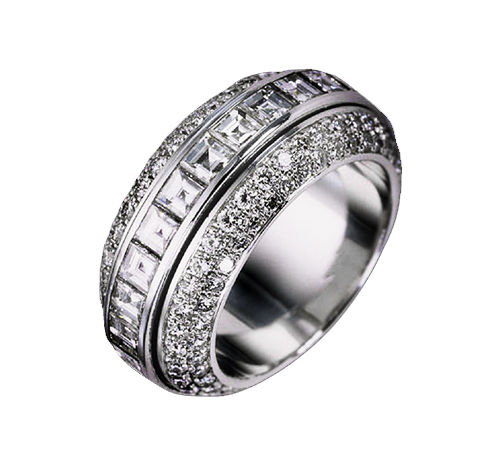 Parker's ring matched his wife's 18K white gold but was not decorated with stones. They each had a special inscription, in French, etched into the inside of the gold ring.