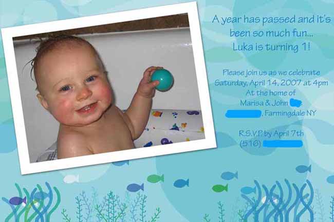 DS isn't into anything either so I decided on an Under the Sea theme. I just wanted something for the plates, napkins and balloons so it didn't look boring. I made this invitation which doesn't match the plates but I thought it was cute Image Attachment(s):
