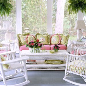 What kind of furniture do you have in yours? We have a florida room off the back of the house (nice size room) and at first I was just going to put a patio table (rectangular) but now I'm rethinking and maybe want to put some wicker furniture or something
