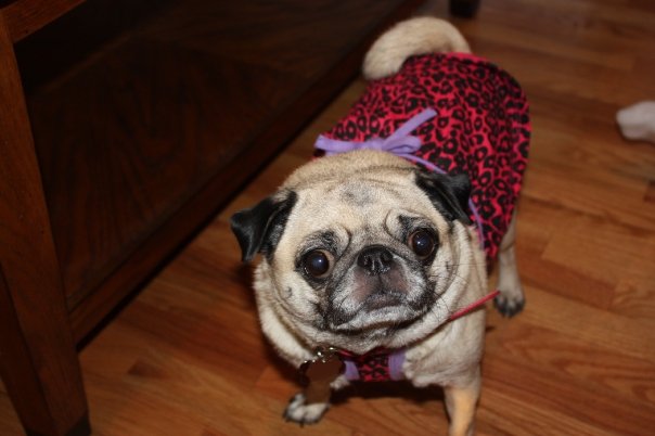 Something unique - she still has her tail - they never cut it. When she gets happy, instead of back and forth it goes around and around..DH calls her propeller butt.