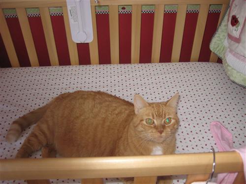 notice how both my animals love the baby's stuff. Bella used to go in there before Katie was born but has since stopped now that Katie goes in there.