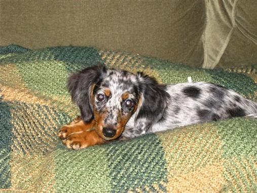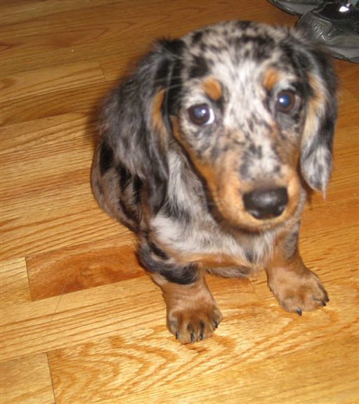 Name: Fiona -Origin of their name: we both just liked it and once we said it, it just stuck! -Breed/type: Long hair mini doxie...silver dapple coloring -Age: she is 10 months old! -Great things about them: She is such a love bug, loves to burrow under the blankets and snuggle on the couch with you! Has the most expressive eyes and cocks her head to talk to you Protective of us but warms up to new people quickly.. Great sleeper...goes into her cage every night and sleeps as long as we do..guests over, new setting..no problem!! -Not-so-great things about them: we are working on overall behavior training still since she is a puppy....she is still not fully potty trained...she will pee on the pads but poop off...so i would say stubborn =) -Do you get comments about them? Yes everyone says they have never seen her coloring before..so cute etc.. here are some pics of our little munchie!! Image Attachment(s):