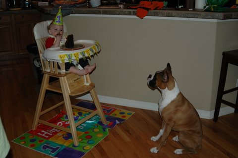 Totally! Bama is such a crumb snatcher! He didn't get any cake, but he did lick the icing off of Jackson's head later