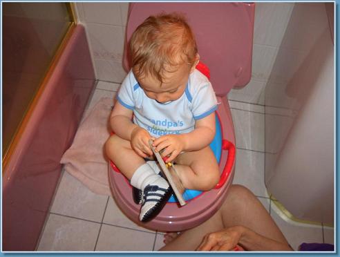 I’m sorry, but I had to share these pictures!! My mother swears that my sister and I were potty trained by 18 months and she started putting us on the toilet bowl at 6 months!! She bought Thomas an Elmo toilet seat and said she was going to start “getting him used to” the toilet at the ripe old age of 13 ½ months while she was watching him overnight at her house this past Friday.