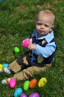 Happy Easter! This was the fun we had yesterday with my parents.... He really got into finding all the eggs!