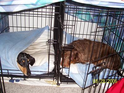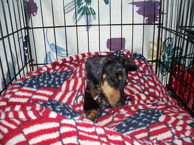 i have a mine doxie and he burrows too. he tends to chew though when he is in the cage so he gets a towel.