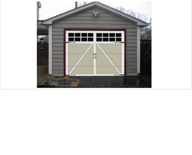 This is our actual garage, DH photoshopped the different garage doors in. Ignore the color. Thanks! Image Attachment(s):