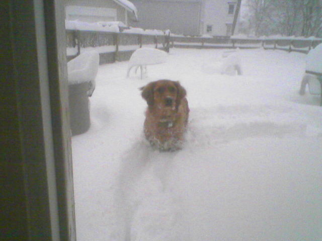 Pics of my DH snowblowing and also of Casey in the yard - she loves the snow!! These were from 9:30 this morning..so of course we got another 6-8 inches on top of this!