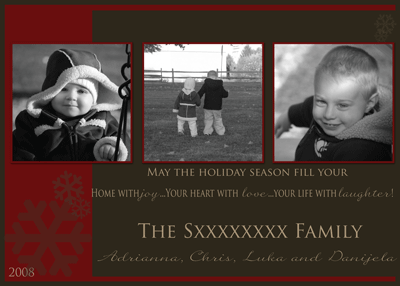First I like to say that the pictures are adorable! I love the the red and brown colors. They are both really nice cards. Can't decide which one. You can always print out both. I did that last year. I sent one kind to my family and the other to my friends.